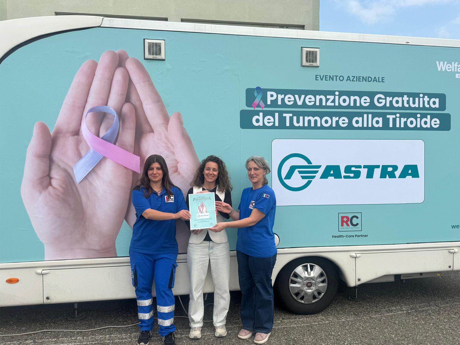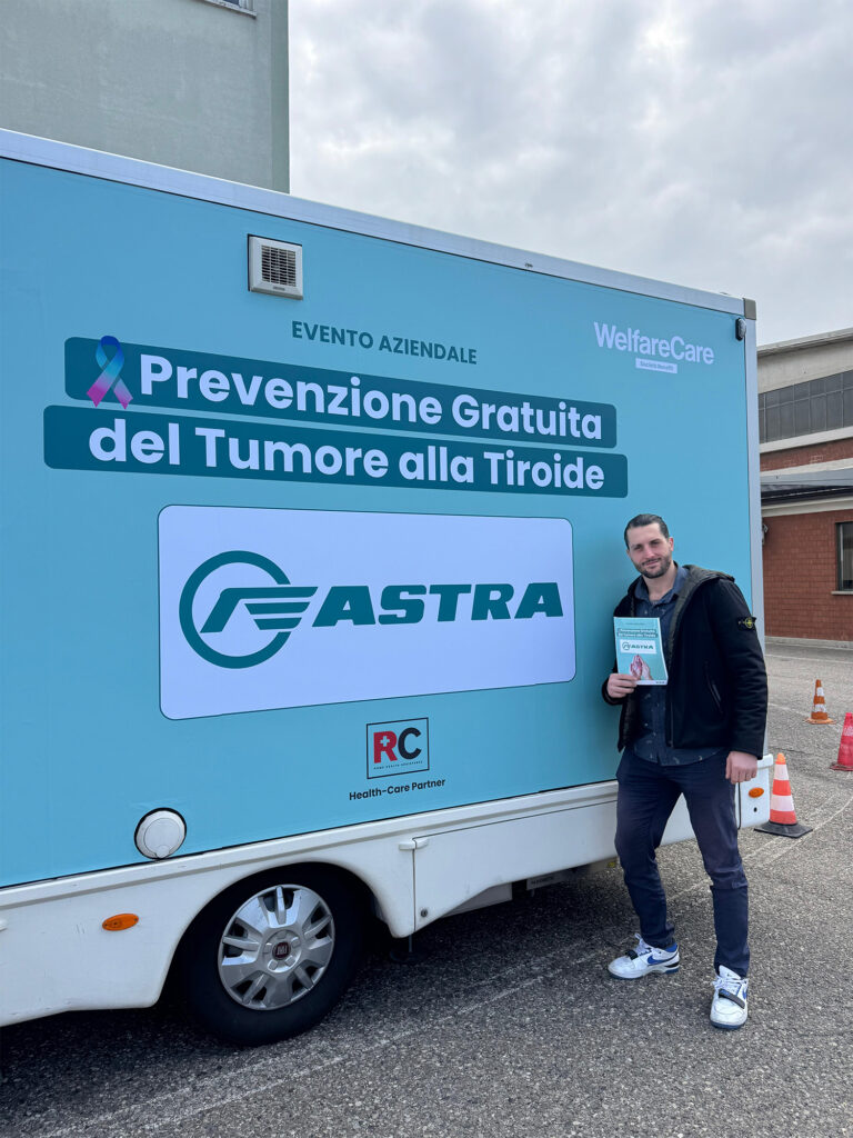 Con grande successo si è concluso l’evento aziendale privato di Astra Veicoli Industriali S.p.A. a Piacenza che, grazie al sostegno del partner, ha portato in sede la clinica mobile di WelfareCare per offrire ai dipendenti esami ecotomografici gratuiti, con l’obiettivo di prevenire l’insorgenza del tumore alla tiroide.